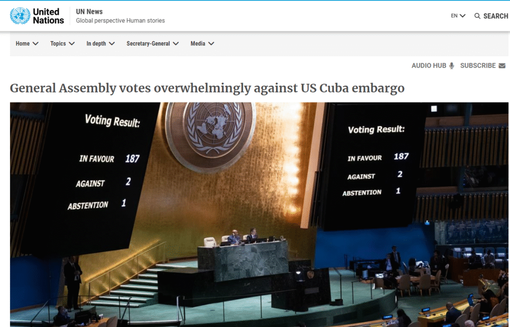 Even in 2023, the United Nations General Assembly continues to be unsuccessful in passing it’s overwhelmingly desired resolutions for the U.S. to end it’s 60-plus year economic, financial and trade embargo against with Cuba – Losing by the American vote and its Plus-1.
